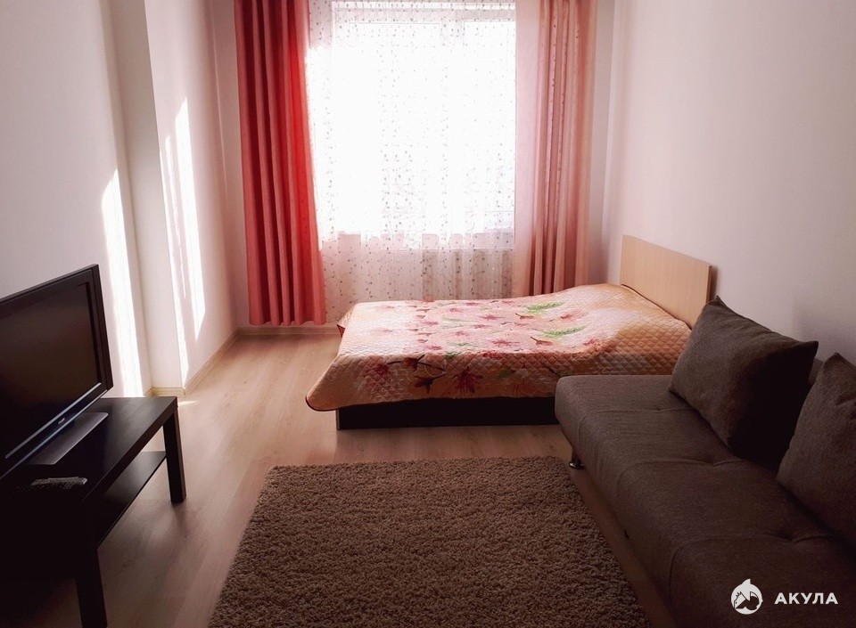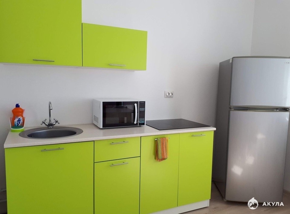 диван, встроенный шкаф-купе с большим зеркалом, телевизор, письменный стол; Так же вся необходимая бытовая техника: