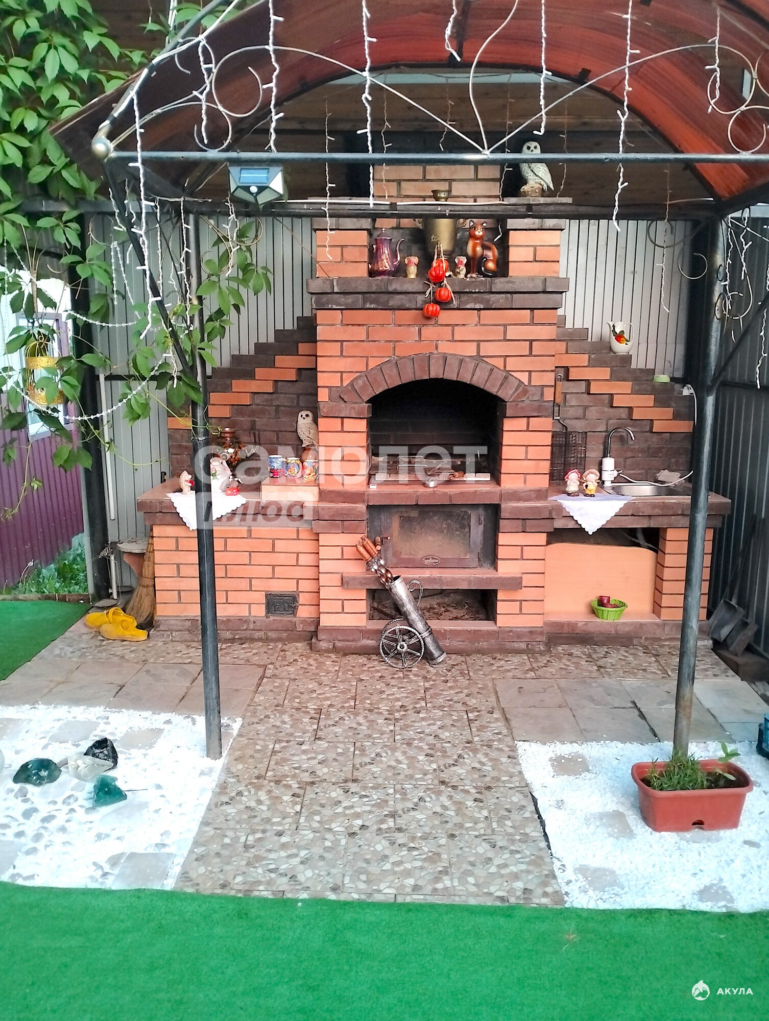 \- Также на территории есть беседка металлическая 2, 5\2, 5м, зона барбекю 4\4м, спортивная зона с турниками и качелей, небольшая баскетбольная площадка.