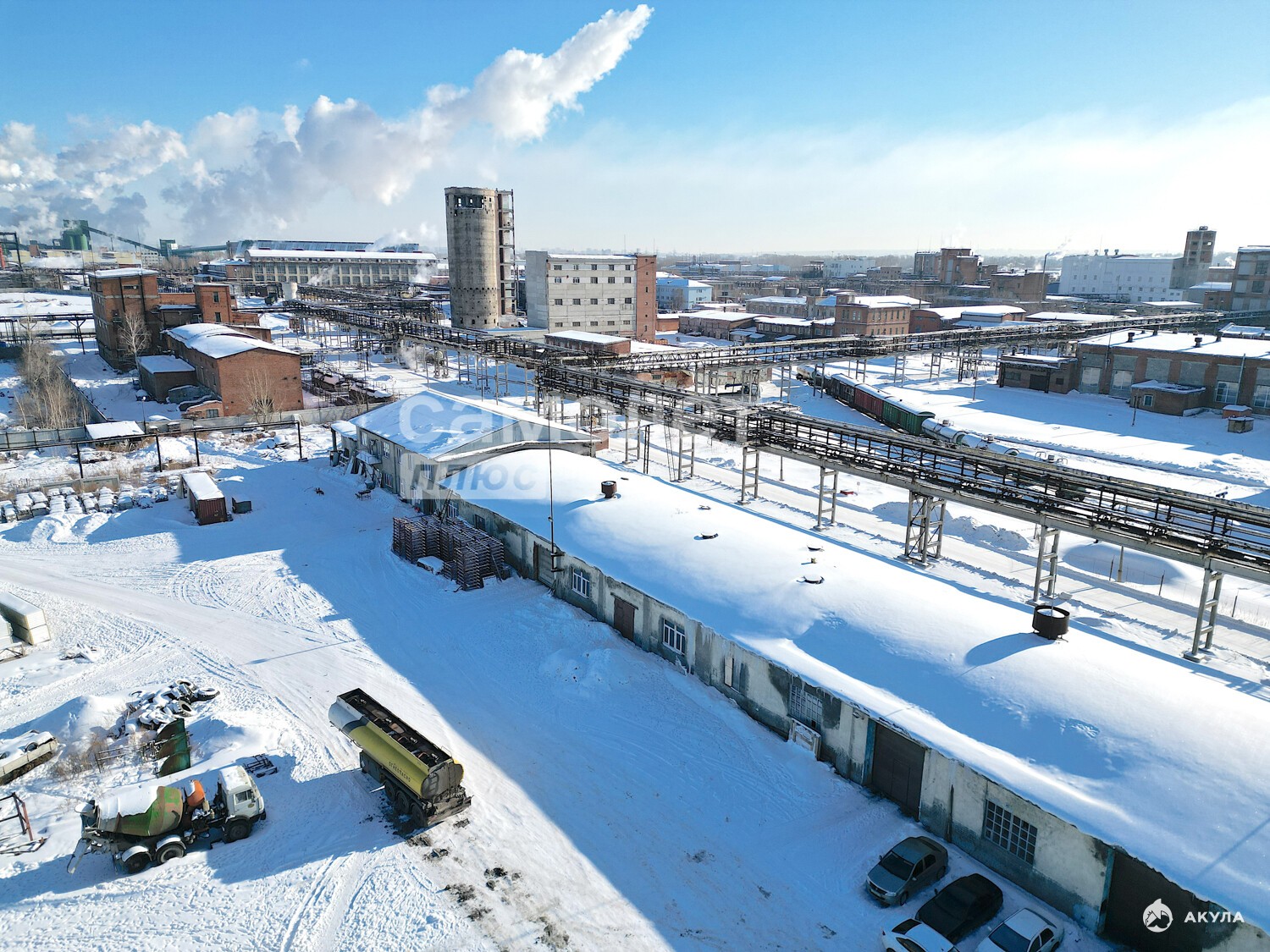 Идеальный комплекс для производственной или логистической компании — готовая инфраструктура, большая территория, удобный подъезд для грузового транспорта.
