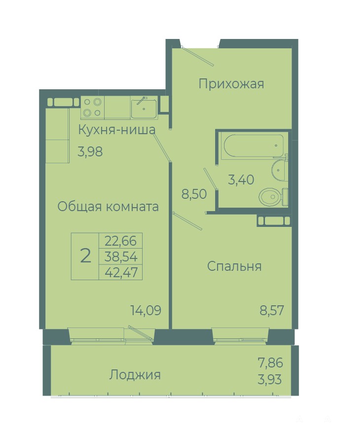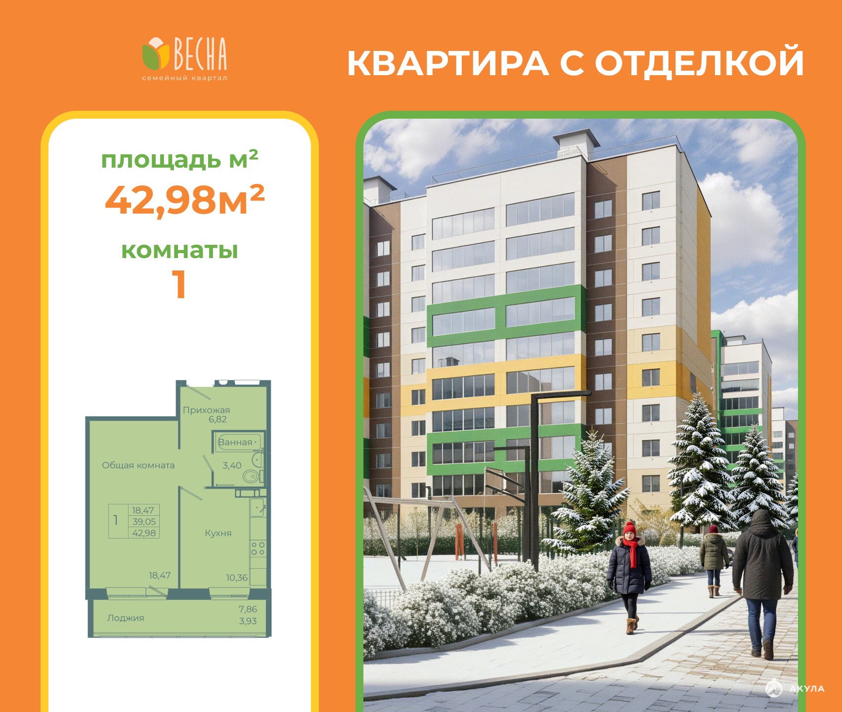 ✅ Площадь 42, 93м2