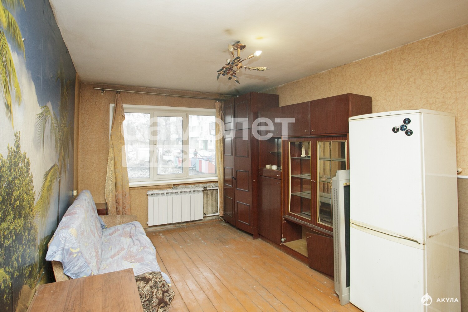 1 комн квартира на 1 этаже, состояние под ремонт, пластиковые окна, пол деревянный, окна выходят за дом, с/у совмещен.