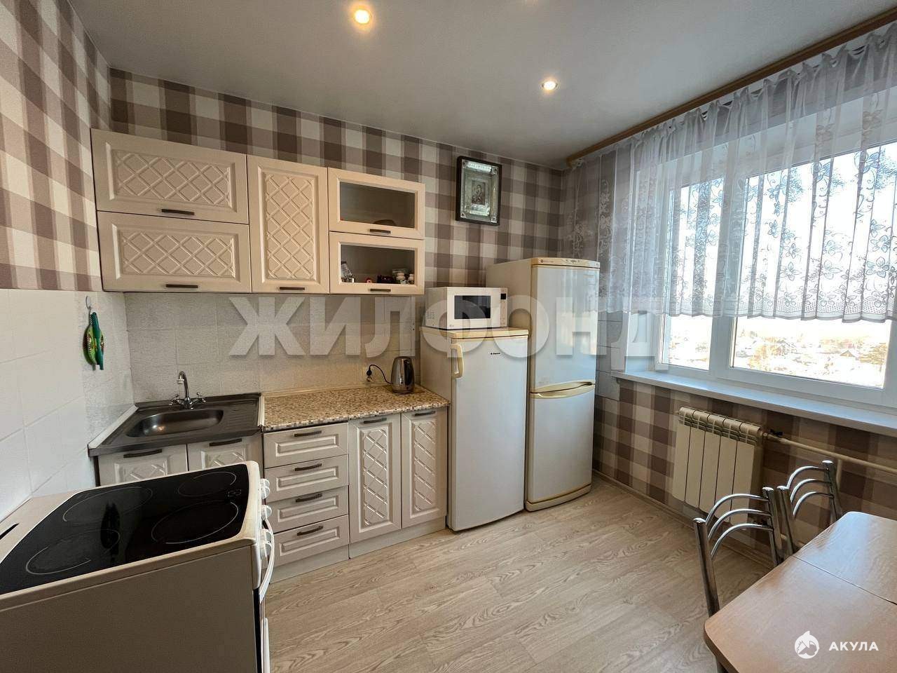 большая кухня площадью 8, 7 м 2- хватит места для семейных ужинов. ,