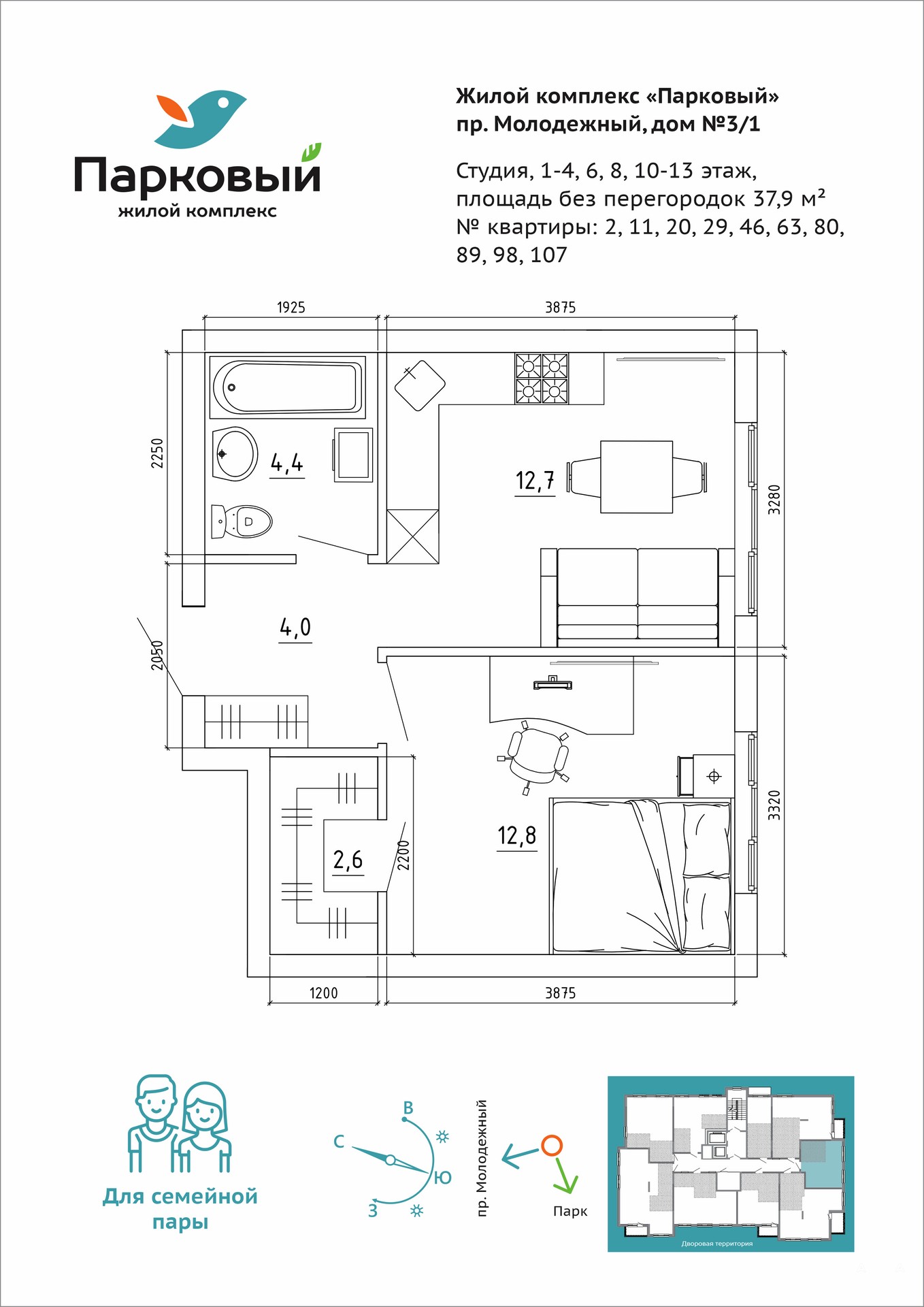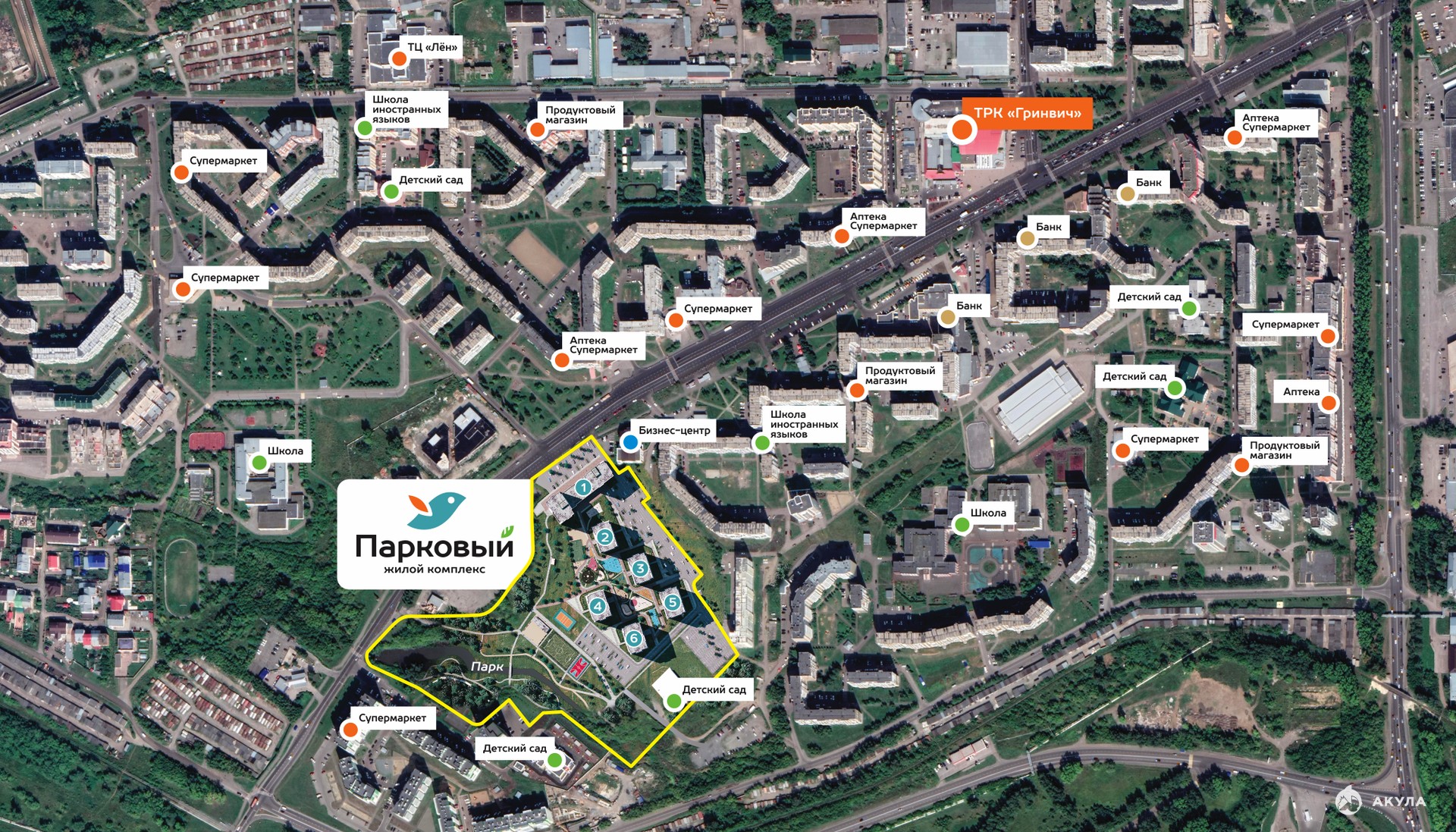 - Собственный фитнес-центр, супермаркет, аптека, детский центр, салон красоты, пекарня и другая необходимая инфраструктура внутри жилого комплекса, в шаговой доступности
