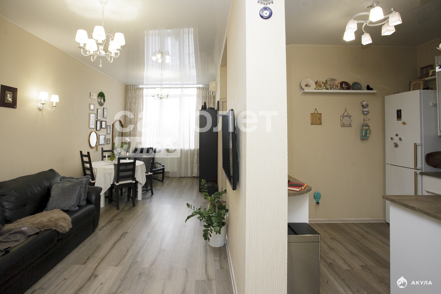 Изолированные светлые комнаты, отличный ремонт из качественных материалов, уютная многофункциональная кухня с техникой (в отличном состоянии), в сан узле современный ремонт, встроенные шкафы с регулируемыми секциями. Практически вся мебель остаётся: холодильник, духовой шкаф, 2 телевизора, посудомоечная машина и др.