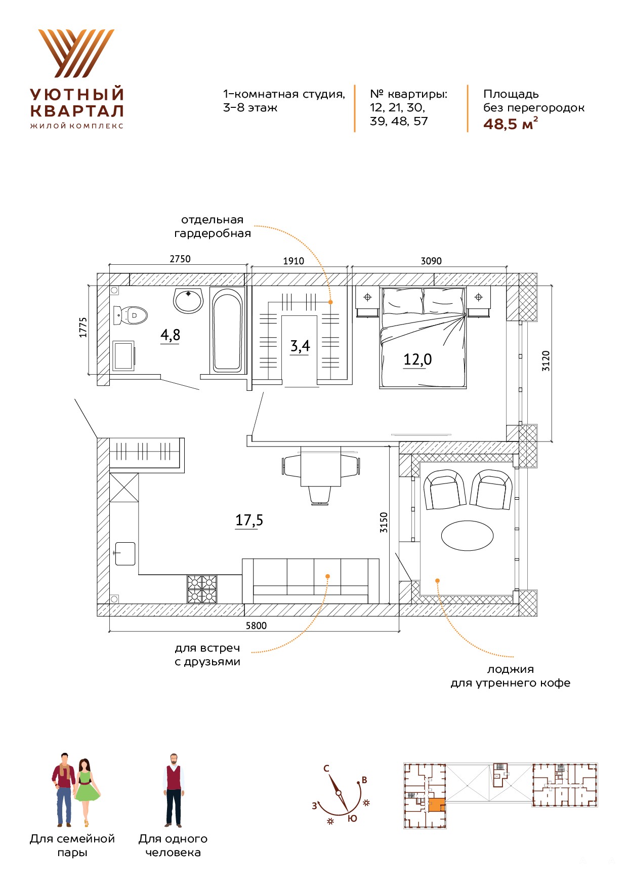 • Площадь — 48, 5 м²