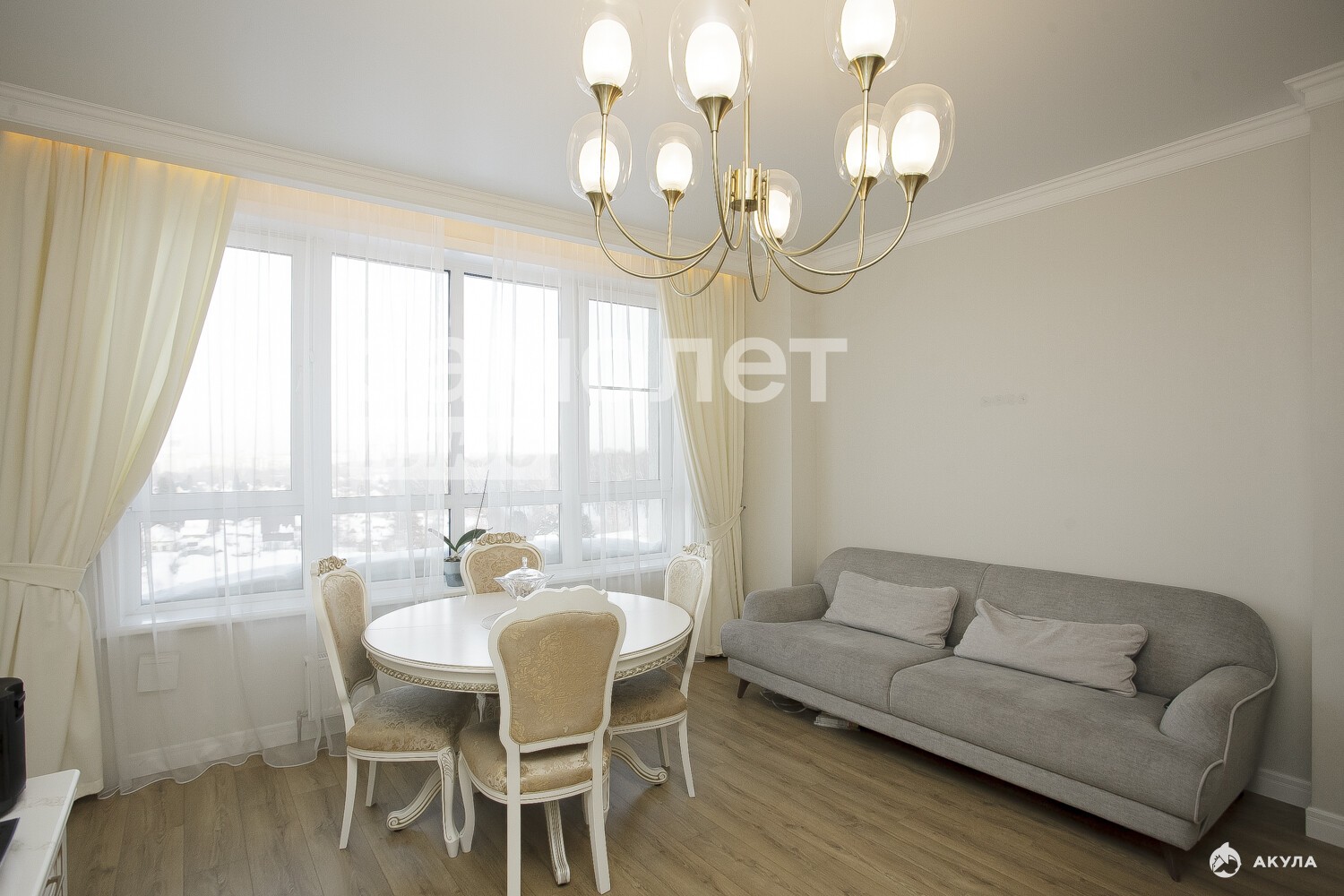 По квартире: пол - ламинат, стены дорогостоящие обои, потолки натяжные, грамотно выполнено световое освещение во всей квартире.