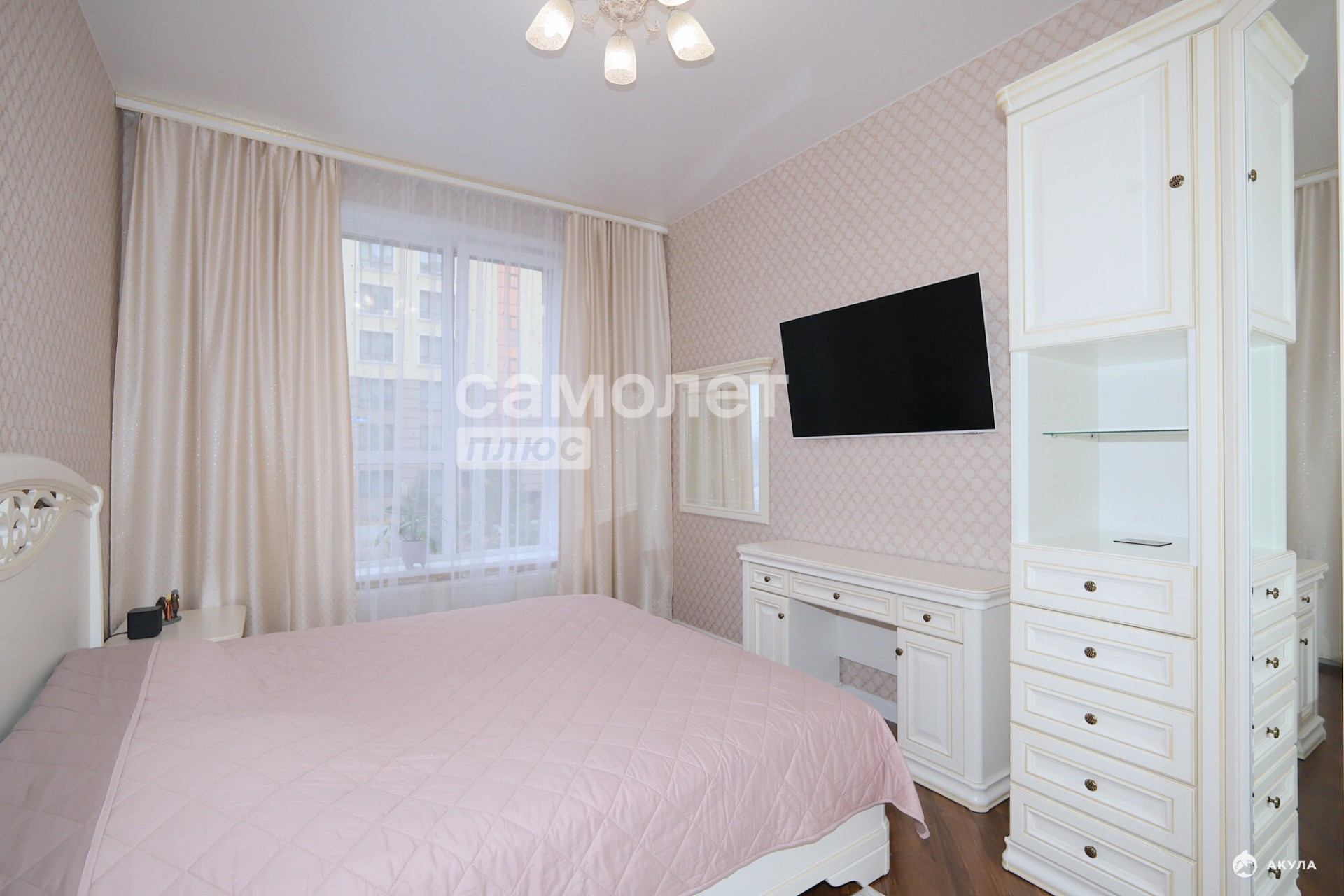 · Площадь: 69, 9 м². Высота потолков 3, 5 м. · В квартире много света и воздуха, благодаря высоте потолков и расширенному остеклению. · Ремонт: качественный, свежий ремонт, выполненный в постельных тонах из качественных материалов.· Две изолированные просторные спальни (13, 3 и 16, 2 м²), в комнатах много света, благодаря увеличенной площади остекления.·Просторный коридор, оборудованная гардеробная· Мебель: кухонный гарнитур, встроенная техника, спальный гарнитур, мебель в детской, оборудованная гардеробная, остается новому собственнику.