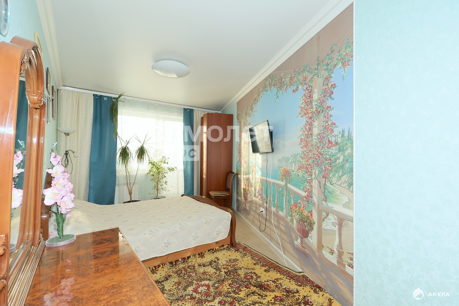 - Планировка с окнами на разные стороны, балкон и большая застеклённая лоджия.