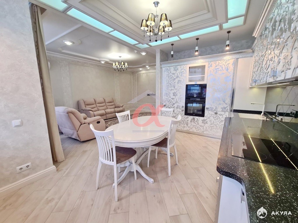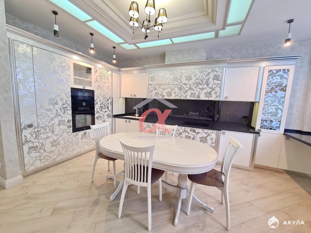 Продам уютную 4-комнатную квартиру в жилом комплексе "Мегаполис". Качественный ремонт делался по дизайн-проекту, поэтому в планировка продумана до мелочей, домой хочется возвращаться снова и снова! В квартире кухня-гостиная 39 кв.м, 3 большие изолированные спальни, 2 гардеробных, 2 санузла, постирочная. Кухонный гарнитур изготавливался на заказ: узоры на фасадах покрыты вручную патиной, фурнитура - Blum, каменная столешница, а также в него встроена вся необходимая техника Bosch (холодильник, духовой шкаф, микроволновая печь, посудомоечная машина, варочная поверхность). Вдоль окна организовано удобное рабочее место с розетками и тумбой для хранения документов. В детских комнатах есть вся необходимая мебель, а вдоль окон организованы рабочие зоны. Во взрослой спальне - большая гардеробная, а также шикарная кровать и матрас со встроенным массажёром. Стены прихожей и холла отделаны дорогой штукатуркой, на полу в прихожей, зале и кухне - керамогранит, в холле и спальнях - паркетная доска.