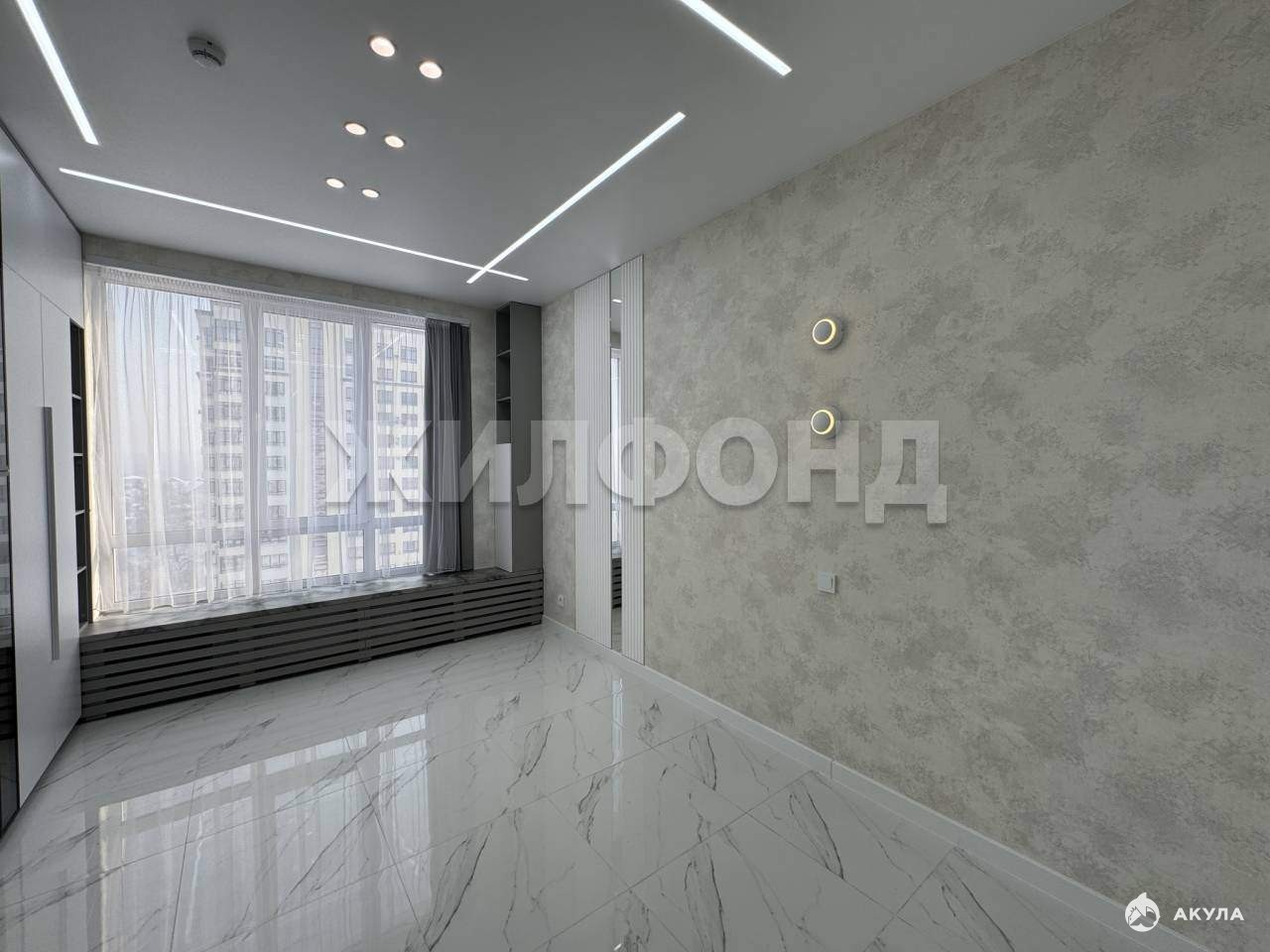 Теплый пол, панорамное окно, лаунч- зона на подоконнике, стильное световое зонирование, высота потолка 3 метра.