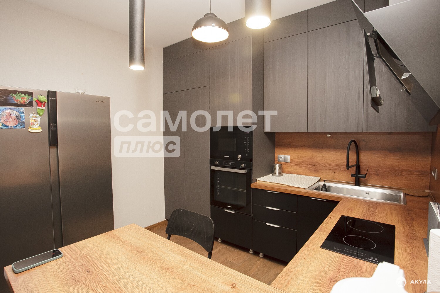 Новая кухонная зона. В современном стиле дополняет полный образ современного стильного дизайн-ремонта. Отличный ремонт из качественных материалов радует "глаз". Техника в отличном состоянии. Исключительной новизны.