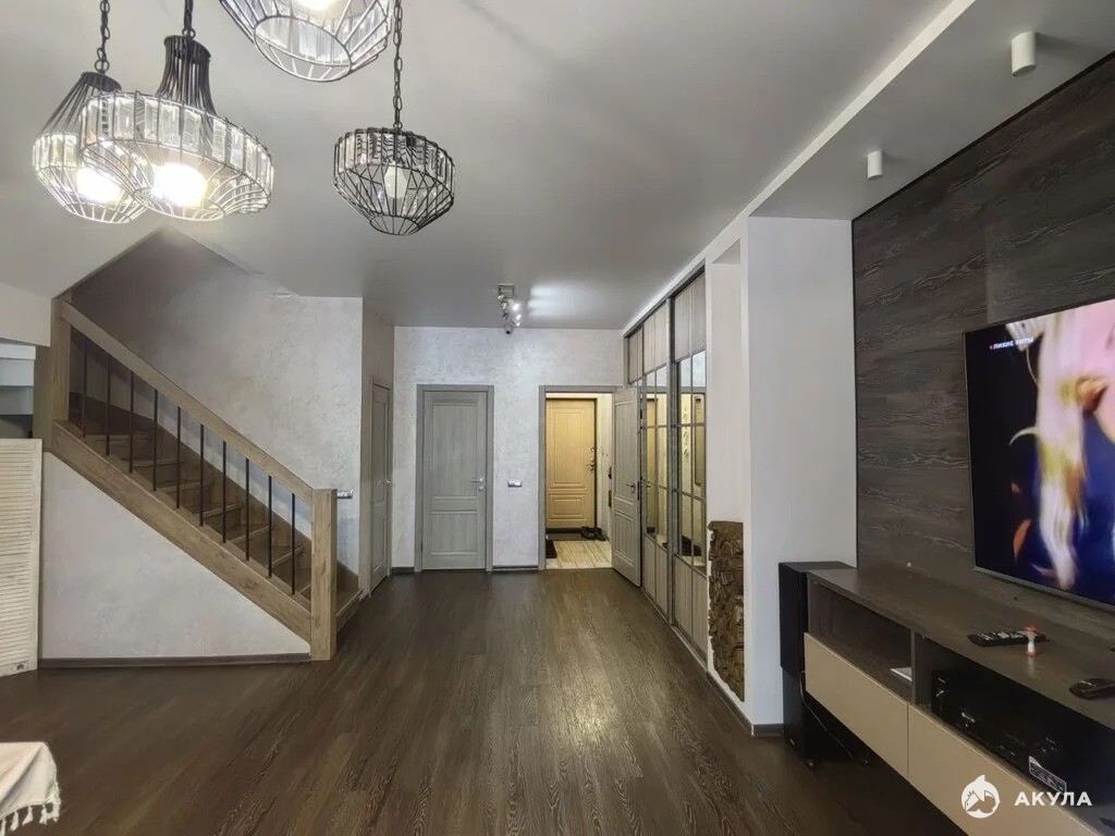 Небольшие, но уютные три изолированные комнаты (спальня и 2 детские комнаты: 15, 3 кв.м.(выход на балкончик с красивым видом из спальни) +8, 8 кв.м.+8, 9 кв.м; совмещенный санузел с современным кафелем до потолка и новой сантехникой 4, 9 кв.м.; просторный холл 9, 7 кв.м., удобная лестница на 2-ой этаж.