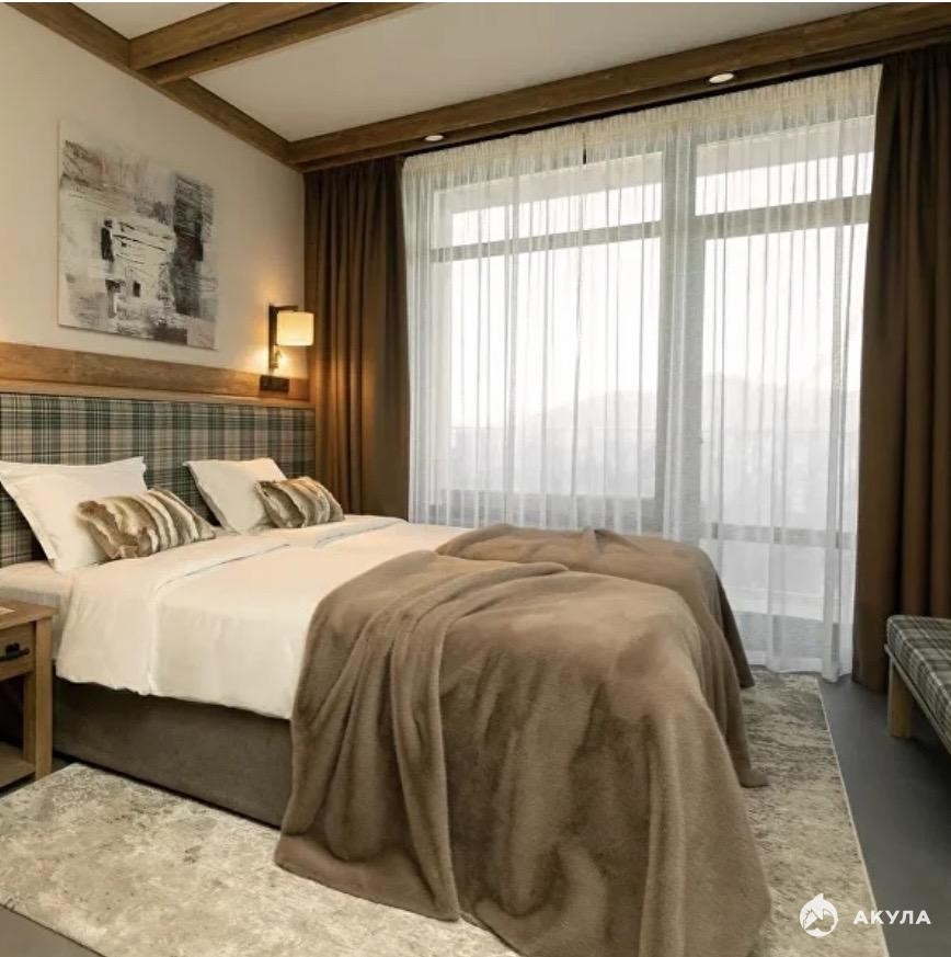 2-ой корпус, комфортный номер с панорамными окнами на заснеженные горы - 24, 29 м2, 8 этаж, восточная сторона.